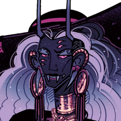 Bedesthaia is the lead for the Medical unit of the Investigation Bureau. They are a neurosurgeon born with abnormally large fingers from Nessan that came to the capital planet to further research on the brain. Because of their mutation, they have two set of complementary hands they use in surgery. On their free time, they indulge in plays, book clubs and funny enough- bowling.Born in Nessan from top tier surgeons, their life was caved out for them since a pretty young age. There was one detail though, their webbed hands got in the way of managing equipment at all and thus they went onto extensive neuronal implants to be able to have 2 more sets of hands attached to their body. They can be plugged on and off at will but most of the time while at work, the glimmer of the metal can be seen underneath their cape.
